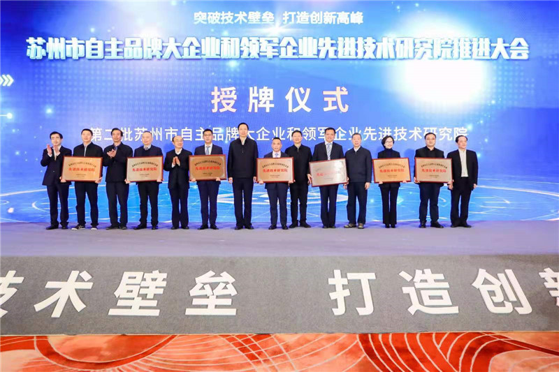2019年12月21日,徐元生董事長率隊參加了由蘇州市委、市政府組織召開的第二批蘇州自主品牌大企業和領軍企業先進技術研究院推進大會,并榮獲市政府授牌蘇州市大企業和領軍企業先進技術研究院。